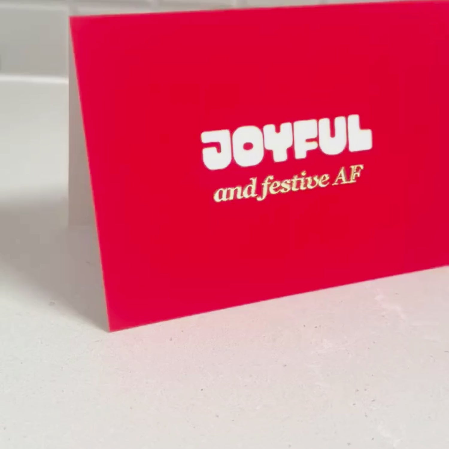 When the vibe is bold, merry and just a little bit chaotic this is the Christmas card. “Joyful and festive AF” is the perfect mix of playful and polished.